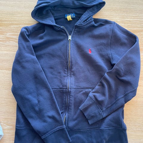 Polo - Tynn grå genser (mørk blå logo) – Str 14-16 - Pris: 350,-