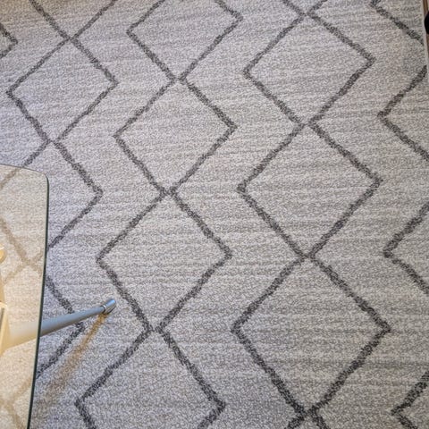 Ellos Tanger teppe med rutemønster. Rektangulært teppe med lys bunnfarge og mørkt, geometrisk rutemønster. Passer som gulvteppe i stue, soverom eller andre oppholdsrom. Teppe med kort lugg som gir et mykt underlag og demper lyd i rommet.
