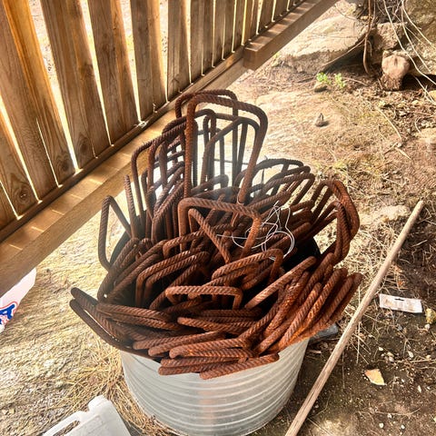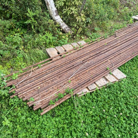 Di er el boid. 120cm på endimensjonal 100 på ande side 20 mm tikkes 150 stik ca selges samler 2000 kr også noen er 10 mm tukles Armeringsjern i stål. Riflet overflate egnet for bruk i betongkonstruksjoner. Flere lengder og bøyde deler ser ut til å være inkludert på bildene. Passer til ulike bygge- og støpearbeider der det er behov for armering i betong.