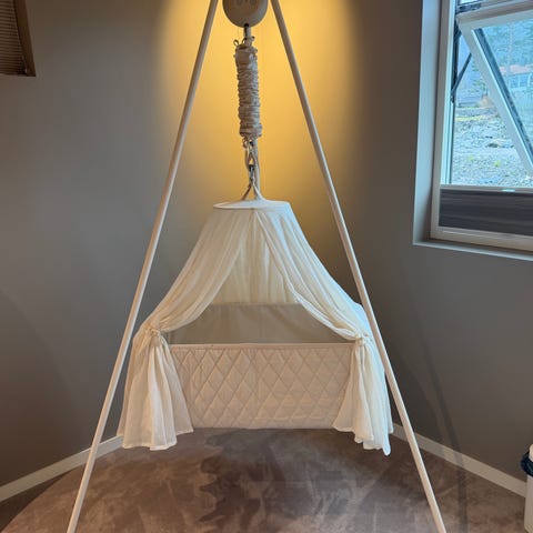 Vi leier ut vår Moonboon 2.0 med motor og oval vugge, da vår baby har blitt for stor for den.