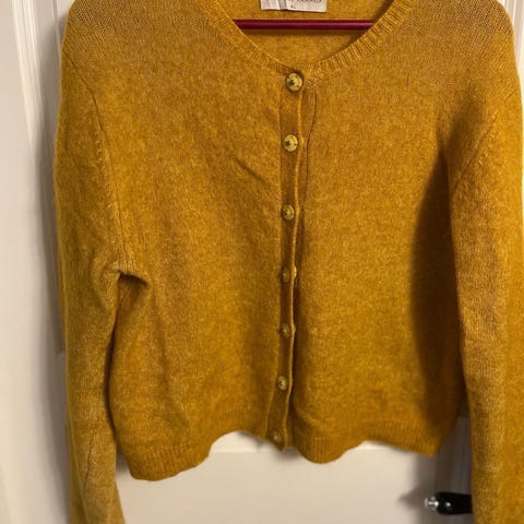 Part Two Ninell cardigan for dame i størrelse M. Cardiganen er strikket i en myk alpakkaullblanding med 32 % alpakka, 32 % ull og 30 % resirkulert polyamid samt 6 % elastan. Modellen har rund hals og knepping foran med knapper. Passer som et lett og varmt lag til hverdagsbruk eller over kjoler og topper.