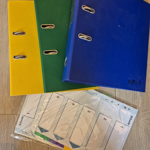 Ringpermer og tidsskriftsamlere kontorutstyr svart blå plast