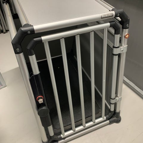 4Pets Proline Milan M. Solid hundebur i aluminium. H 66 cm, B 55 cm, D 84 cm, vekt 15 kg. Passer til mellomstore hunder, for eksempel beagle, shetland sheepdog o.l. Sidehengslet dør, best egnet til bil uten terskel i bagasjerommet.