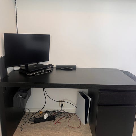 Godt brukt skrivebord fra IKEA. Bredde: 160cm, dybde: 60 og 110 på det dypeste.