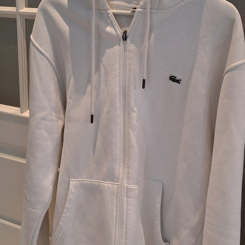 Meget pent brukt hettegenser fra Lacoste. Litt usikker på størrelse, da det står 6 inni genseren, men vil si den er Large/XL