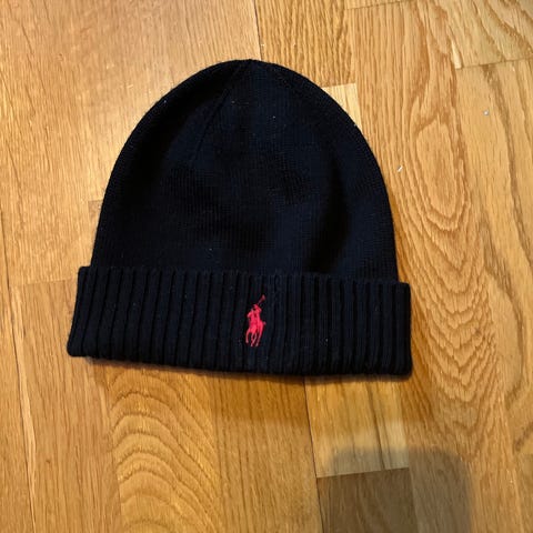 Ralph Lauren Polo lue i grå farge. Strikket modell i merinoull, merket som vaskbar. Luen har brettet kant og klassisk passform. Størrelse one size, beregnet for herre, men kan også passe andre avhengig av hodeomkrets. Egner seg til bruk i hverdagen og i kjøligere vær.