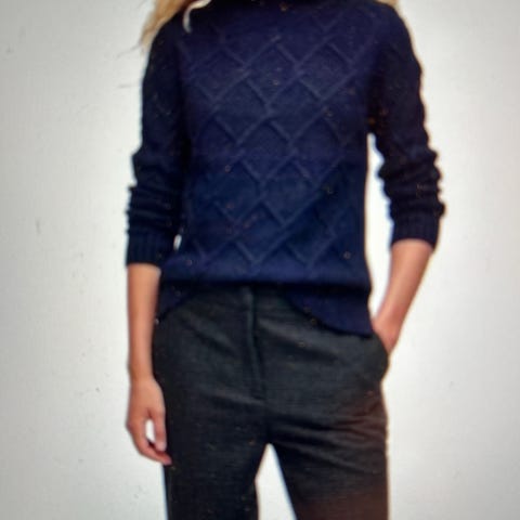 Barbour genser i størrelse M. Genseren er beige og strikket i ull. Den har rund hals og ribbekanter. På ermene er det albuelapper i Barbour-rutemønster. Passer til hverdagsbruk eller som et ekstra lag på kjølige dager.