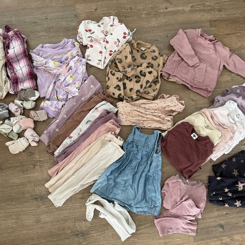 Stor klespakke i størrelse 68. Totalt 28 plagg. Det meste fra Newbie og name it. Pent brukt, men noen plagg er brukt mer enn andre.