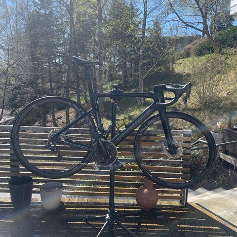 Alt fungerer perfekt. Den er original oppsatt, dvs bortsett fra hjul. Det sitter Zipp 303s karbon felger oppsatt med Specialized dekk 28mm. Satt opp tubeless. Hjulene er fra 2021/22.