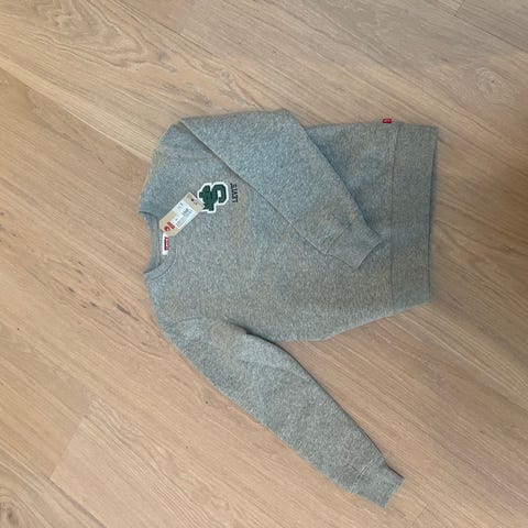 Ny Levi’s piquegenser for gutt i størrelse 164. Genseren er i blå farge med gule og hvite detaljer og stort Levi’s-logo på brystet. Langermet modell i bomull, egnet til hverdagsbruk. Passer til barn rundt 164 cm høyde.