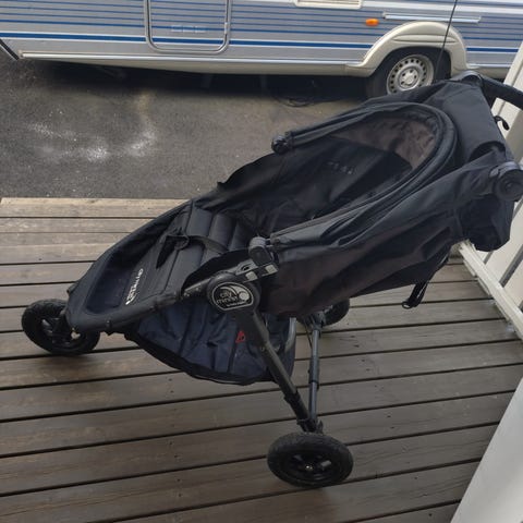 Baby Jogger City Mini GT barnevogn i svart. Vognen har tre hjul med svingbart forhjul, justerbart håndtak og stor kalesje med lufte- og titteluke. Setet kan legges langt ned for hvile og søvn, og det er oppbevaringskurv under setet. Egnet som sportsvogn til hverdagsbruk og trilleturer i variert terreng.