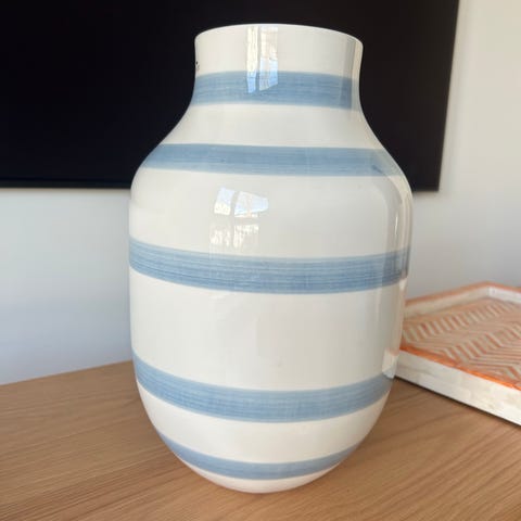 Kähler Omaggio vase med horisontale blå og hvite striper. Pent brukt. Må hentes hos meg i Kristiansand