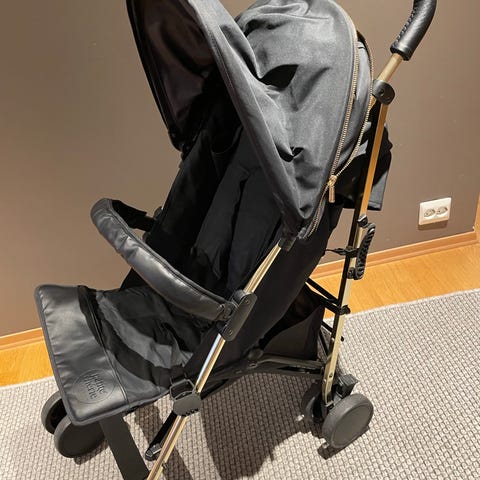 Vognen har polstret sittedel med justerbar rygg og fempunktssele. Et feste til sele er ødelagt, men byttes lett. Frontbøyle foran setet gir ekstra støtte. Håndtaket er ergonomisk utformet. Vognen har fire hjul med dekk som gir stabilitet, samt kurv under til oppbevaring av bagasje eller handleposer.