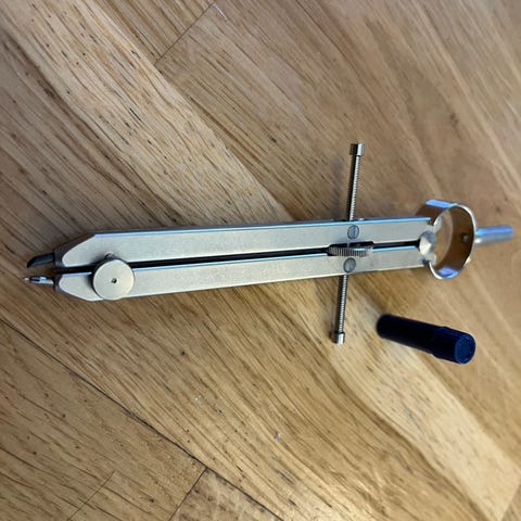 Følger med to pinner/stikker i metall og kraftig tråd.