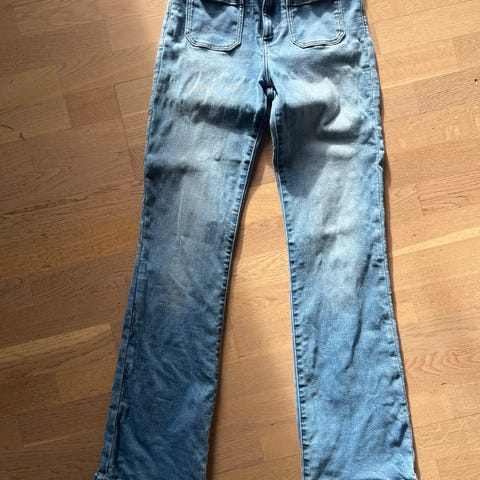 Wrangler jeans for dame i blå denim. Buksen er i strls W27 L30. Passer til hverdagsbruk og kan kombineres med ulike topper og sko for både avslappede og mer pyntede antrekk. Har flere bilder så send melding om interessert