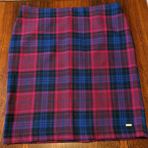 Hampton Republic 27 skjørt for dame i størrelse 44. Skjørtet er grått og laget hovedsakelig av polyester, med fôr på innsiden. Det har kort lengde, lett utsvingt fasong og legg foran. Glidelås i ryggen. Passer til hverdagsbruk eller mer formelle anledninger, og kan kombineres med både bluser, gensere og jakker.