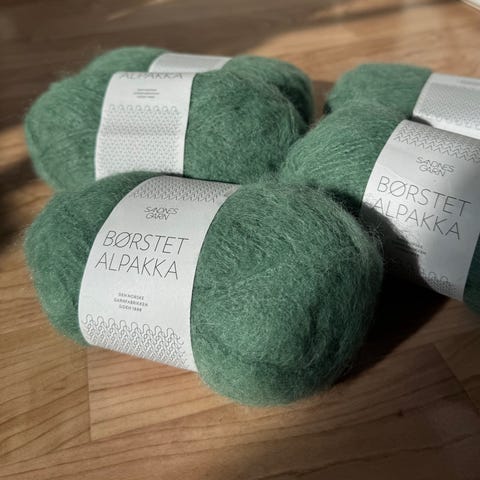 5 nøster Sandnes Garn Børstet Alpakka i lys gul farge.