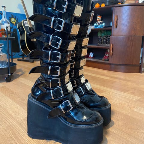 Vurderer å selge de sykeste og kuleste demonia skoene ever, kun fordi jeg tåler ikke gå i høye heler over tid, så de blir bare stående😭