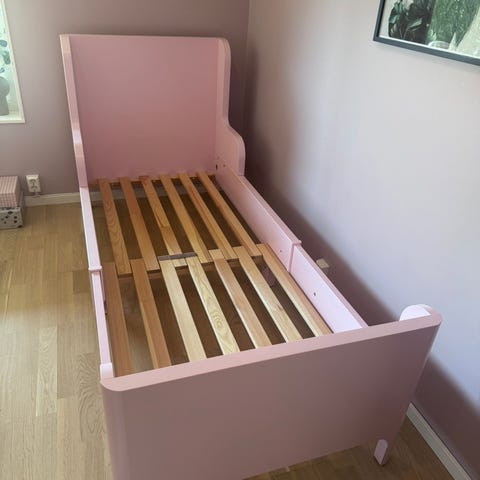 IKEA uttrekkbar barneseng gul metall