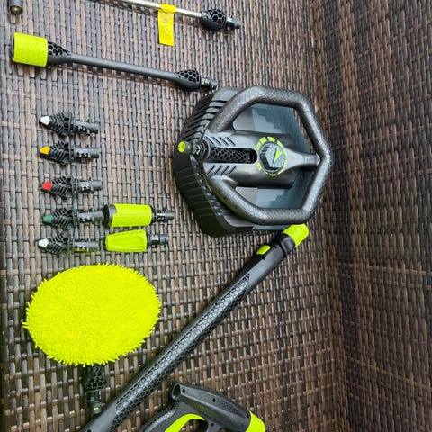 Jeg kjøpte akkurat høytrykkspyler hvor ekstra utstyr følger med.