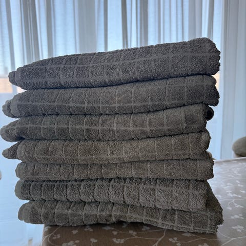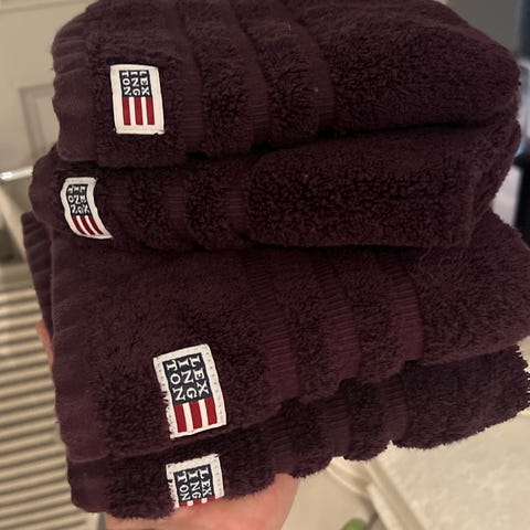 Lexington håndklær, brune. 100% bomull. 2 stk 70x130, nypris 550,- pr stk, 1 stk 100x150, nypris 750,- pr stk, 2 stk 30x50, nypris 125,- pr stk. selges samlet 600,-.