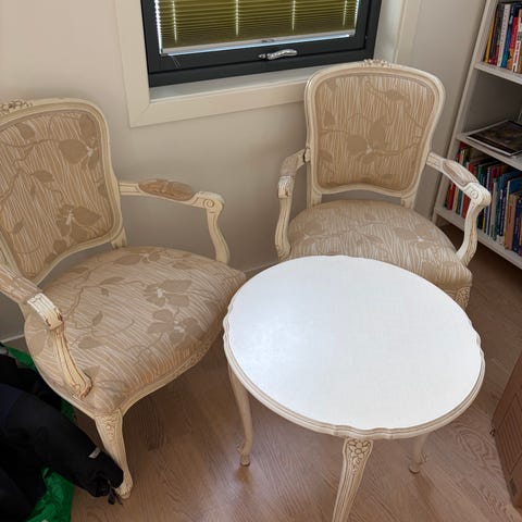 Retro stoler, off White, med sølvfarget stilig slankt understell.