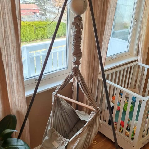 KjÞpt ny i februar 2025 og brukt av ett barn fra april til november 2025. Vuggen er pent brukt og fremstÄr som i veldig god stand, uten synlige skader.(lite merke pÄ posen rundt fjeren, men har ingen betydning da det ikke vises)