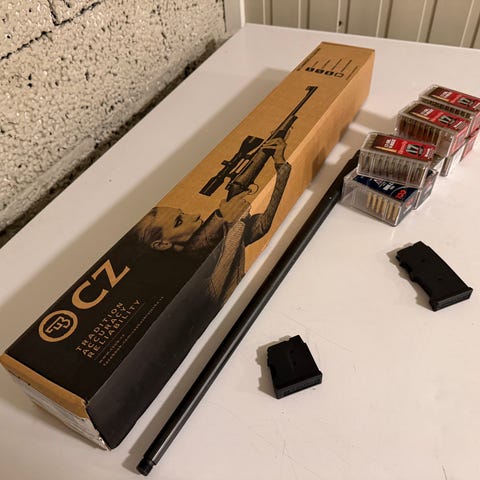 (RESERVERT)Ubrukt CZ 455 / CZ 457 løp - 22 WMR Varmint 52 cm pipe uten sikter, gjenget for lydemper med beskyttelsesmutter og med 5 skudds magasin, 50 skudd og verktøy for løpsbytte. Må ha godkjent søknad.