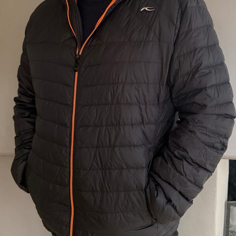 Kjus jakke for herre i størrelse L. Jakken er brun og laget i polyester. Den har gjennomgående glidelås i front, høy krage og vattert/quilteet mønster for jevn fordeling av isolasjon. Modellen har sidelommer med glidelås. Passer som lett ytterjakke til hverdagsbruk og i aktivitet som, alpint, turer etc.