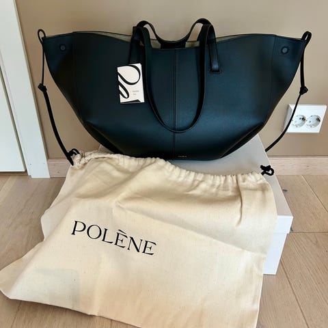 Selger min nye, store Polène Cyme tote i textured taupe. Vesken er nettopp kjøpt, men ble feil størrelse for mitt bruk. Dustbag følger med.