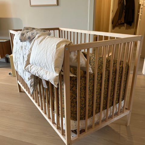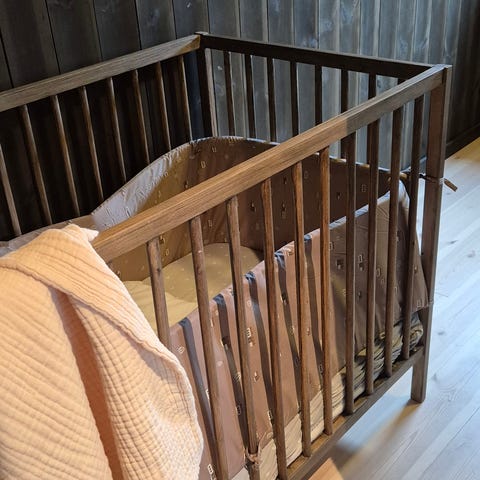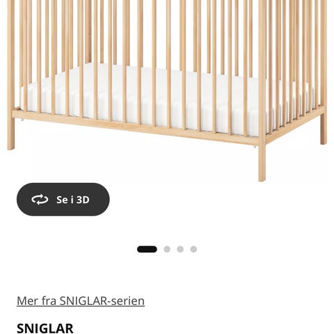 IKEA Sniglar sprinkelseng i lyst treverk. Klassisk rektangulær barneseng med sprosser på alle sider. Sengen har fast bunn og er beregnet for madrass i standard sprinkelsengstørrelse.