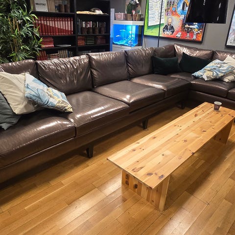 Den kommer fra et hjem hvor det har vært brukt av både katt og barn 🐱👶 Det betyr at det er noen kloremerker nederst på sjeselongen (se bilde 9-11), men ikke noe som er veldig synlig i vanlig bruk.