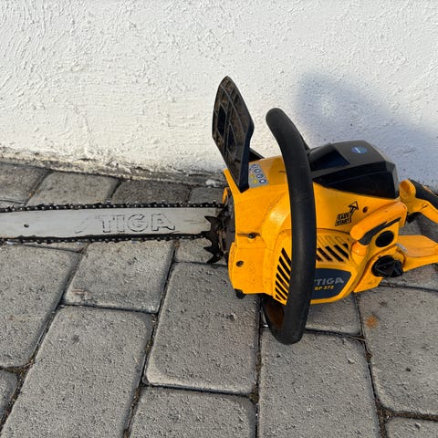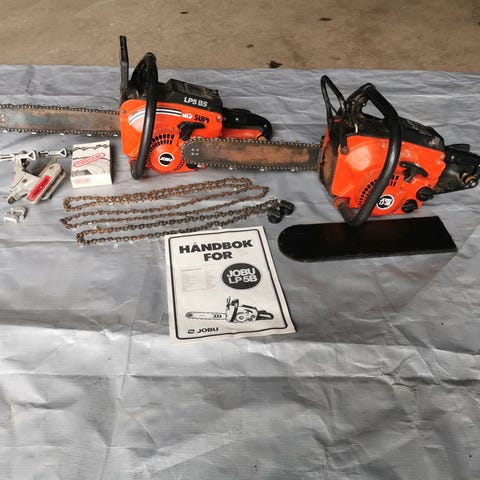 Jobu SL 3S motorsag i oransje farge. Bensindrevet sag med håndtak foran og bak for tohåndsgrep. Kjedebrems og betjeningsbryter plassert på toppen av sagkroppen. Passer til generelt sagsarbeid som felling og kapping av ved, avhengig av kjedelengde og tilstand på sag og kjede. Nærmere tekniske spesifikasjoner som effekt, sverdlengde og vekt er ikke oppgitt og bør eventuelt kontrolleres av kjøper. Den går som ei klokke nå, og smører godt. Kjørte en halv tank igår gikk som bare det, er faktisk litt futt I den. Tar vips på forhånd, og da går jeg å sender. Sånn pleier jeg å gjøre det. Gikk bra på tomgang å. Kul sg
