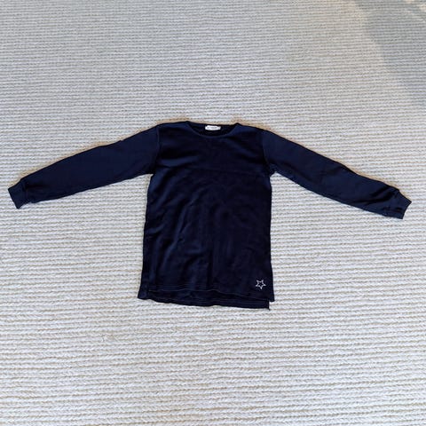 WoolLand ullgenser for gutt i størrelse 134. Genseren er blå med rund hals og lange ermer. Den er laget i ull og har et motiv med elgfigur på brystet. Passer til hverdagsbruk og som mellomlag på kjølige dager.