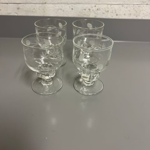 Består av fire glass, to rette glass med tykk bunn og to glass med stett og rund fot. Egner seg til servering av små drikker som snaps, likør eller espresso. Laget av klart glass og passer til bruk på kjøkken eller ved borddekking.
