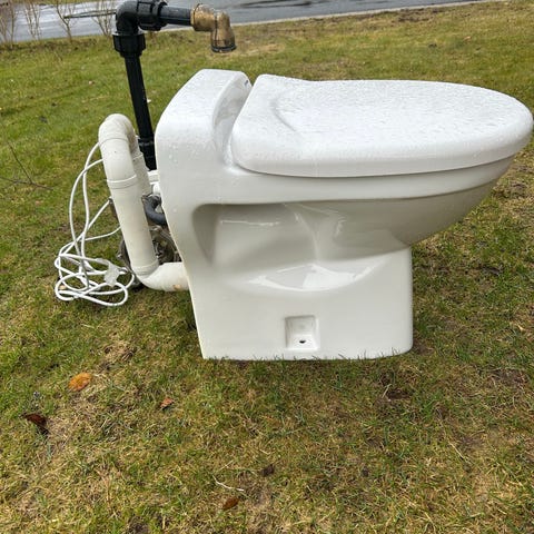 Jets VOD-5A vakuumtoalett system. Komplett vakuumbasert toalettsystem med toalett, vakuumpumpe, kontrollenhet og oppsamlingstank. Systemet er egnet for installasjon der det er behov for vakuumtoalettløsning, for eksempel i båt, hytte eller andre anlegg uten tradisjonell avløpstilkobling. Kontrollpanelet viser tilkoblingsskjema for tank, pumpe og toalett, og har funksjoner for start, stopp og overvåking av systemet.220v brukt på hytte