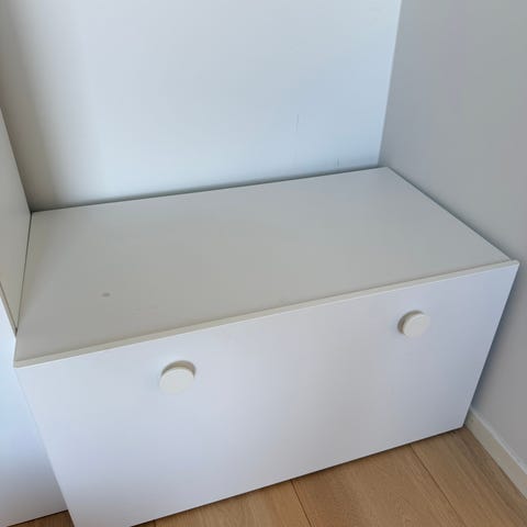 IKEA skrivebord i hvit utførelse. Bordet har rektangulær bordplate og åpne hyller på den ene siden som gir ekstra oppbevaringsplass til bøker, permer eller annet utstyr. Egner seg som arbeidsbord eller lekseplass på barnerom, ungdomsrom eller hjemmekontor.