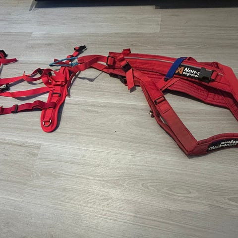 Non-stop Dogwear trekksele i svart med blå detaljer. Selen er polstret for økt komfort og har justerbare stropper for tilpasning rundt hundens kropp. Refleksdetaljer langs kantene gir bedre synlighet i mørket. Egnet til tur og aktivitet med hund. Str 6 kun brukt få ganger, som ny