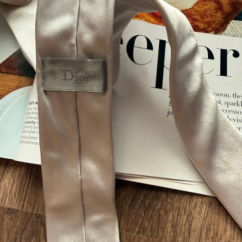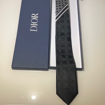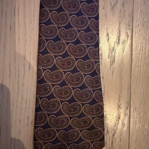 Christian Dior, Loewe, Lanvin og Giorgio Armani slips i ulike mønstre og farger. Slipsene er merket «Cravates» og «Cravatte» og er laget i silke, produsert i Frankrike og Italia. Passer til formelle anledninger, kontorbruk eller andre situasjoner der slips er ønsket. Flere forskjellige mønstre og farger gir mulighet for variasjon i antrekk. Selges samlet