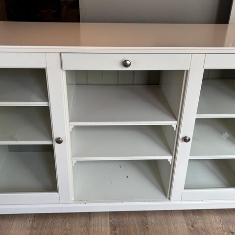 Fin hvit skjenk med glassdører og skuff gis bort!