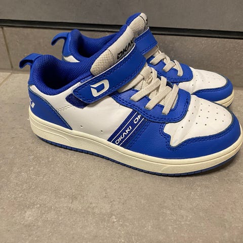 Joma joggesko for barn i størrelse 30, unisex. Skoene er hvite med mørkeblå detaljer og polstret kant rundt ankelen. Overdelen har perforeringer for ventilasjon og lukkes med to borrelåsstropper på hver sko. Yttersåle i gummi med mønster for grep. Hentes på Løren/Økern i Oslo eller sendes med Helthjem (betales av kjøper).
