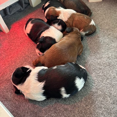 Vi har et nydelig kull med valper (1 jente og 5 gutter) som vokser opp i trygge, hjemlige omgivelser med masse kjærlighet og daglig kontakt. Valpene får en god start på livet med fokus på sosialisering, trygghet og positive opplevelser.
