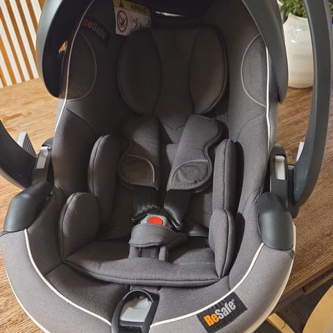 BeSafe bilsete til baby for barn 0–13 kg. Setet er bakovervendt og beregnet for spedbarn. Det har integrert bærehåndtak og polstret innside for økt komfort. Fempunktssele holder barnet sikkert på plass. Stofftrekket er i grå tekstil. Setet kan brukes i bil og eventuelt på kompatibel base eller barnevogn, avhengig av modell og tilbehør som følger med fra produsent. Passer som første bilsete fra nyfødt til barnet vokser ut av vekt- og størrelsesområdet for gruppe 0+ (0–13 kg).