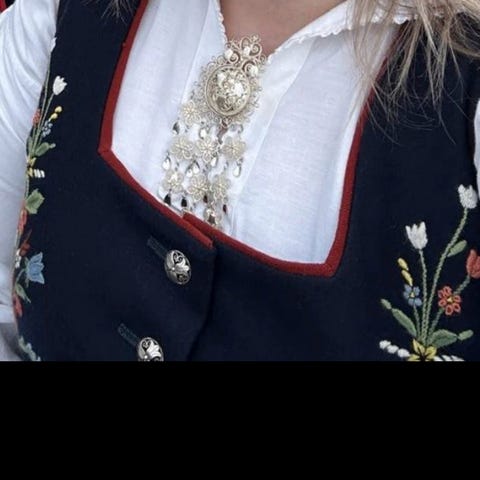 Bunadsbelte passer størrelse S til M. Beltespennene er nå sydd inn inntil 75 cm men kan sys ut 10 cm og inn så mye du vil det er enkelt å sy om spennene.