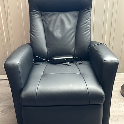 Recliner med løftemotor kjøpt på Møbelringen vinter 2024. Tekstil er Caprice grey. Motorisert regulering av rygg, fothviler og løft der disse funksjoner styres med en håndkontroll. Laget med miljøvennlig formstøpt kaldskum, som sikrer varighet og ergonomisk riktig sittekomfort. Inkludert armbeskyttere i tekstil. Kvittering medfølger. Nypris 19.999,-