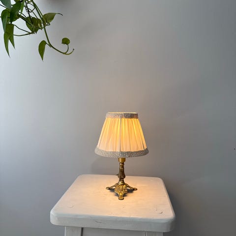 Mål: m/skjerm 35cm. Skjermen har veldig små unetydelige merker. Lampefoten er nærmest strøken.
