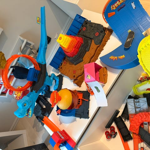 1 bilbane med vaskeanlegg: denne kan en fylle vann i blekksprut bla, og vaske bilene. Veldig gøy. Pent brukt og i god stand