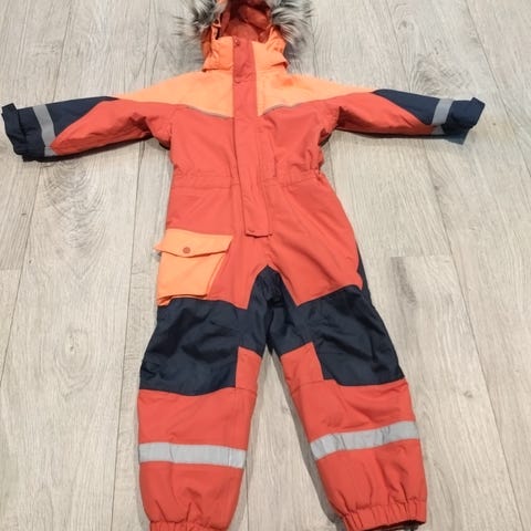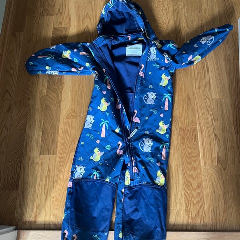 Name it parkdress for barn i størrelse 110. Parkdressen er unisex og flerfarget med mønster. Materiale i Gore-Tex som er utviklet for å være vind- og vanntett samtidig som det puster. Hetten er festet og dressen har lange ermer og ben. Egnet som yttertøy for barn i barnehage- og lekealder i variert vær.
