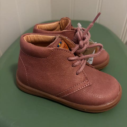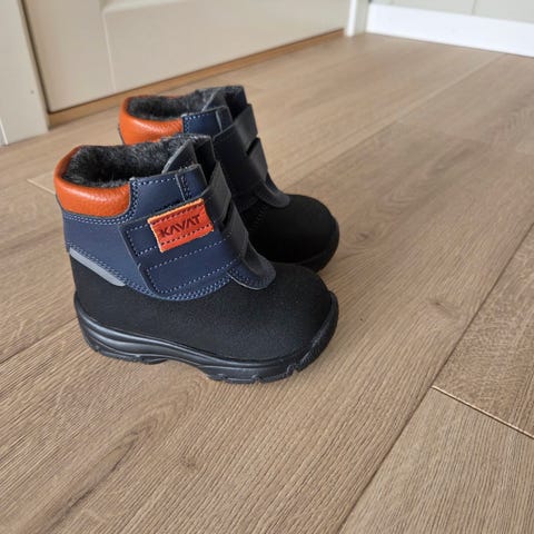 Kavat Axamo barnesko for jente i størrelse 22. Skoene er i lilla farge med hvite lisser og hvit såle. Overdelen er i glatt materiale med perforerte detaljer på sidene for bedre ventilasjon. Modellen er en lett og myk sko med god støtte rundt ankelen, egnet som hverdagssko for barn. Leveres i original eske med modellinformasjon på etiketten. Aldri brukt
