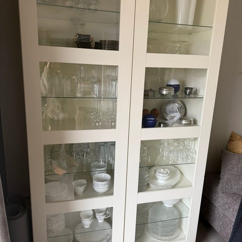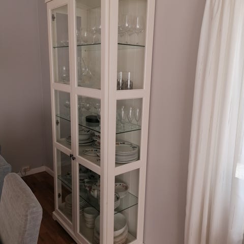 Vitrin skap . Mål bredde 85cm, høyde 190cm, dybde 40 cm